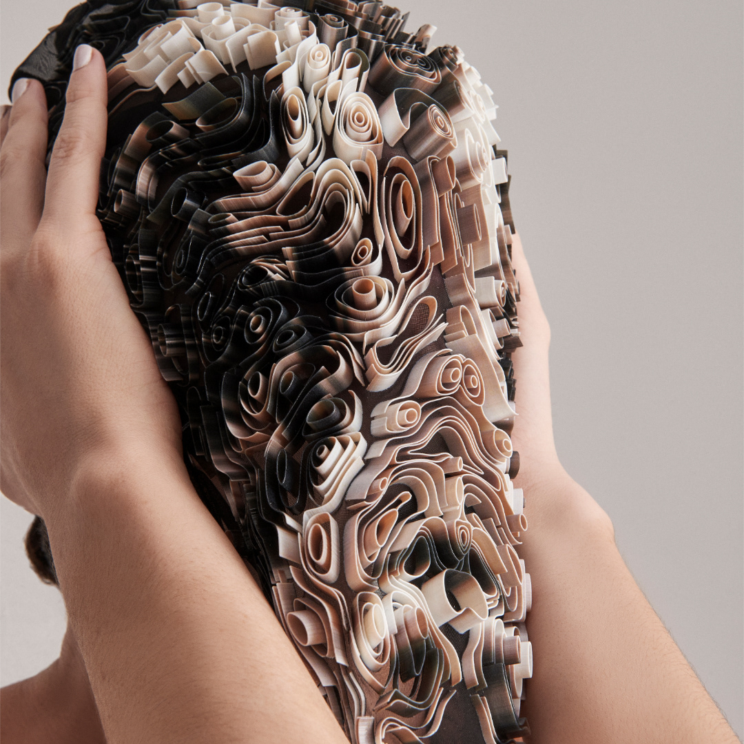 Thermal studies of the human head, mapping areas of heat distribution, were translated into adaptive algorithms that informed the design of the masks – modulating material placement and internal structures to enhance functionality.